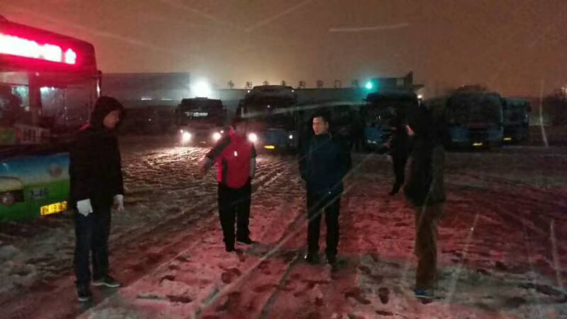 1月3日下午,荊門迎來(lái)了新年里第一場(chǎng)大雪,荊門氣象已經(jīng)發(fā)布暴雪警報(bào),收到暴雪警報(bào)后,荊門市公共交通集團(tuán)有限公司立即成立了150人的暴雪應(yīng)急隊(duì),早早準(zhǔn)備了防凍防滑物資:鹽2噸,防滑鏈400余條,鐵鍬60把,救援車10臺(tái);公司領(lǐng)導(dǎo)全部到一線坐鎮(zhèn)指揮,管理人員向近千名駕駛員傳授了雨雪天安全駕駛知識(shí);晚十點(diǎn),巡查人員開(kāi)始查看危險(xiǎn)路段結(jié)冰情況,確定凌晨裝防滑鏈和撒鹽人員;凌晨4點(diǎn)應(yīng)急人員和駕駛員全部到位,按探路組、裝防滑鏈組、撒鹽組、監(jiān)管組分工負(fù)責(zé),并對(duì)出車駕駛員逐車逐人安全叮囑!以求能確保所有車輛都能一路平安!
