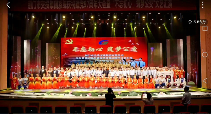 6月26日,市公共交通集團(tuán)有限公司在荊門劇院舉行慶祝建黨97周年表彰大會暨“不忘初心,筑夢公交”文藝演出,來自11個基層單位員工獻(xiàn)出了一場炫目多彩的紅色文化視聽盛宴。