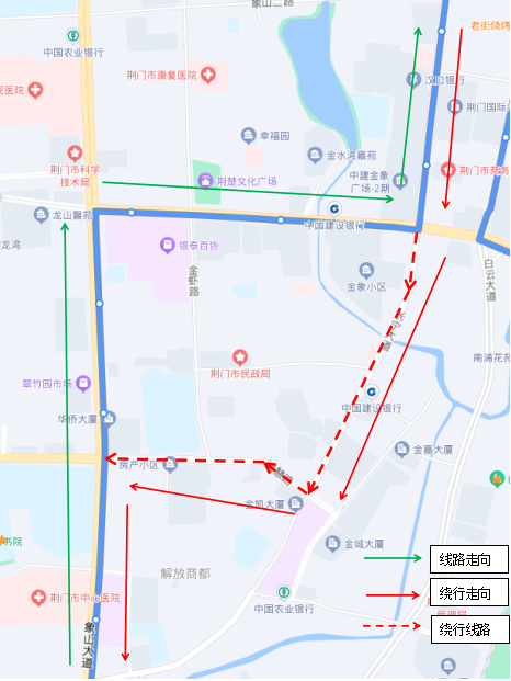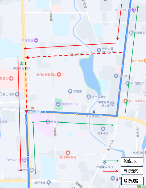 調(diào)整后新增??空军c(diǎn):瀏河橋(西側(cè))、金寧小區(qū)(西側(cè))、荊門(mén)電視臺(tái)(西側(cè))、鳳臺(tái)社區(qū)(北側(cè))、?;壑袑W(xué)(北側(cè))。