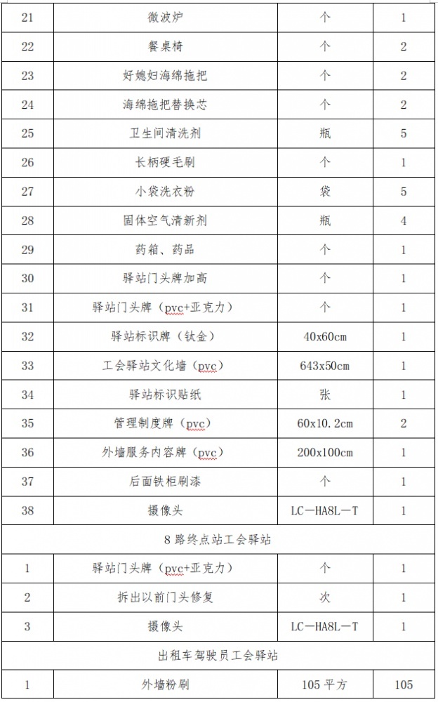 工程內(nèi)容:3路、8路終點(diǎn)站及出租車駕駛員休息驛站,統(tǒng)一規(guī)劃、整合升級,具體內(nèi)容詳見工程量清單(附件)。