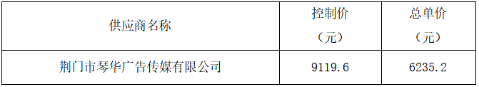 荊門市公共交通集團(tuán)有限公司2024年廣告開展設(shè)計制作類年度供應(yīng)商采購項(xiàng)目進(jìn)行了詢價,經(jīng)詢價小組評審?fù)扑],現(xiàn)將本次詢價的成交結(jié)果公布如下: